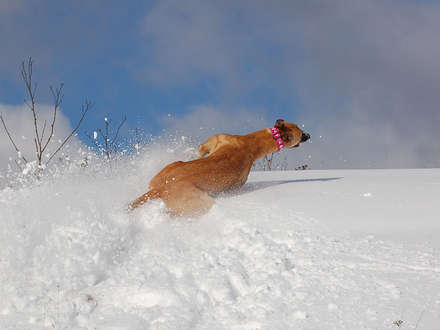 aber auch Lala findet den weichen Schnee genial